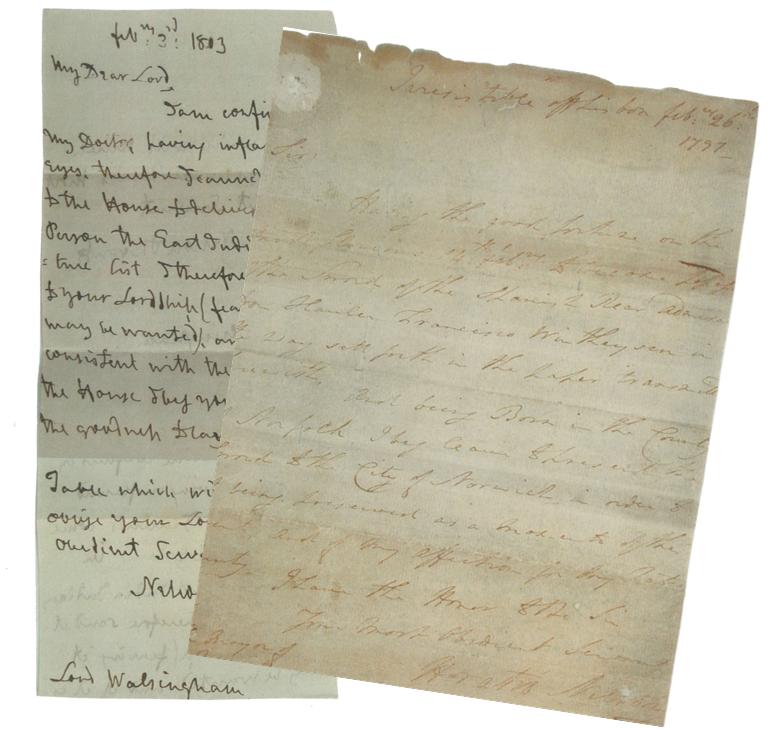 Our intrepid walkers met at the Nelson statue in the Upper Close of Norwich Cathedral which was not only a good central place to start our walk, but a good excuse to show two of our favourite documents; the Nelson Letters.