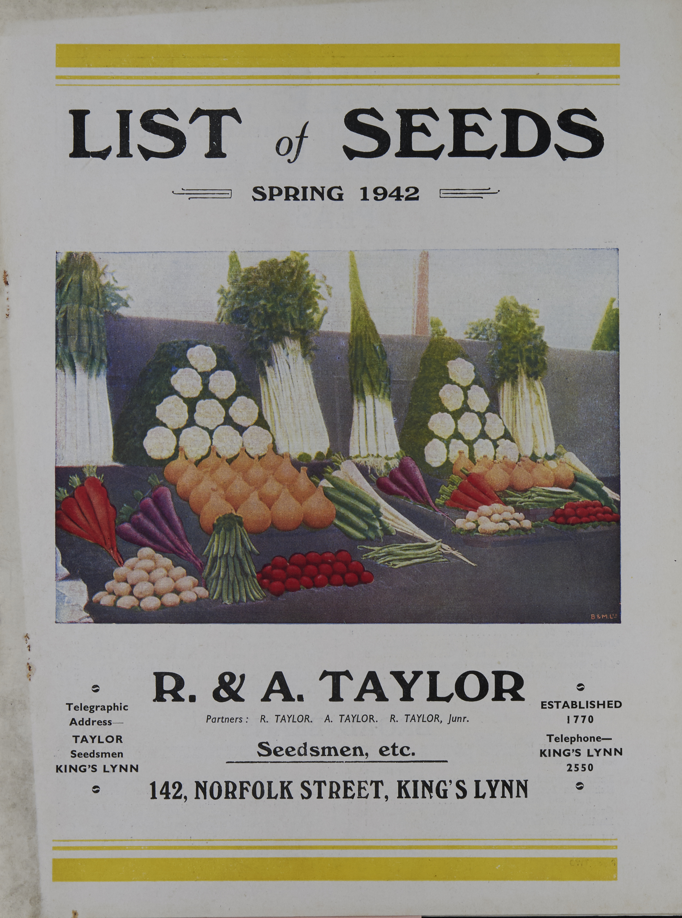 Moving onto Taylors of Kings Lynn. These records donated to the Norfolk Record Office contain adverts, price lists and seed packets for Norfolk’s historic seed merchants. Taylors in Kings Lynn was a firm that dated back to at least 1770. These recently donated records are additional to previously donated records from Taylors.