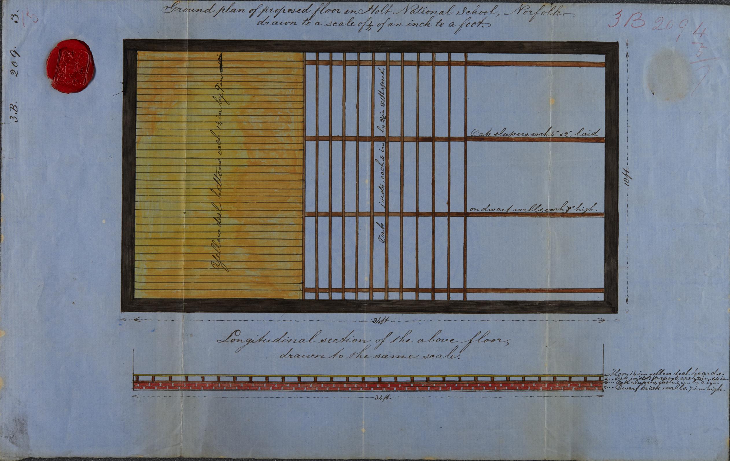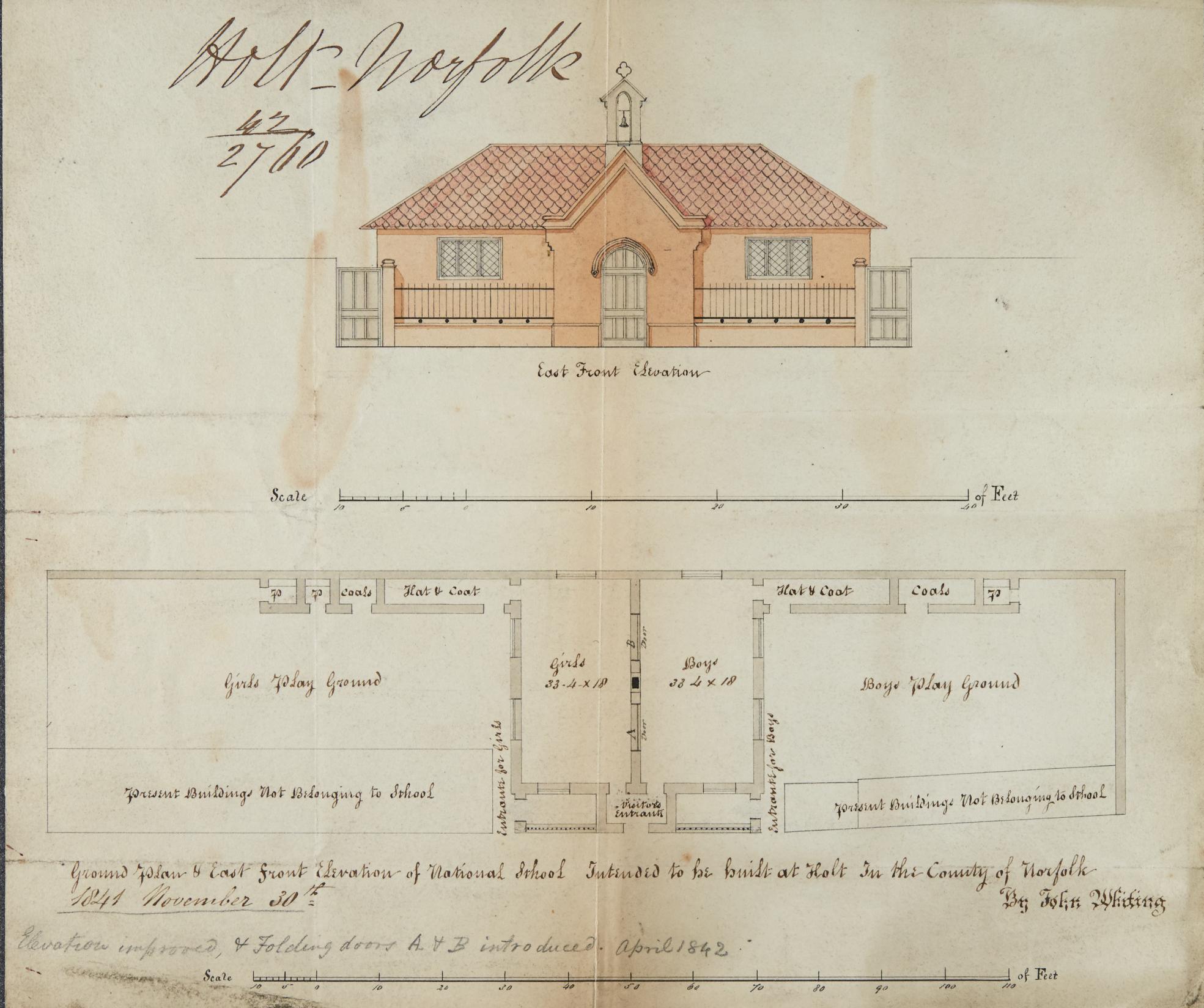 The following two images are of the school building grant plans (1841) for Holt National School.