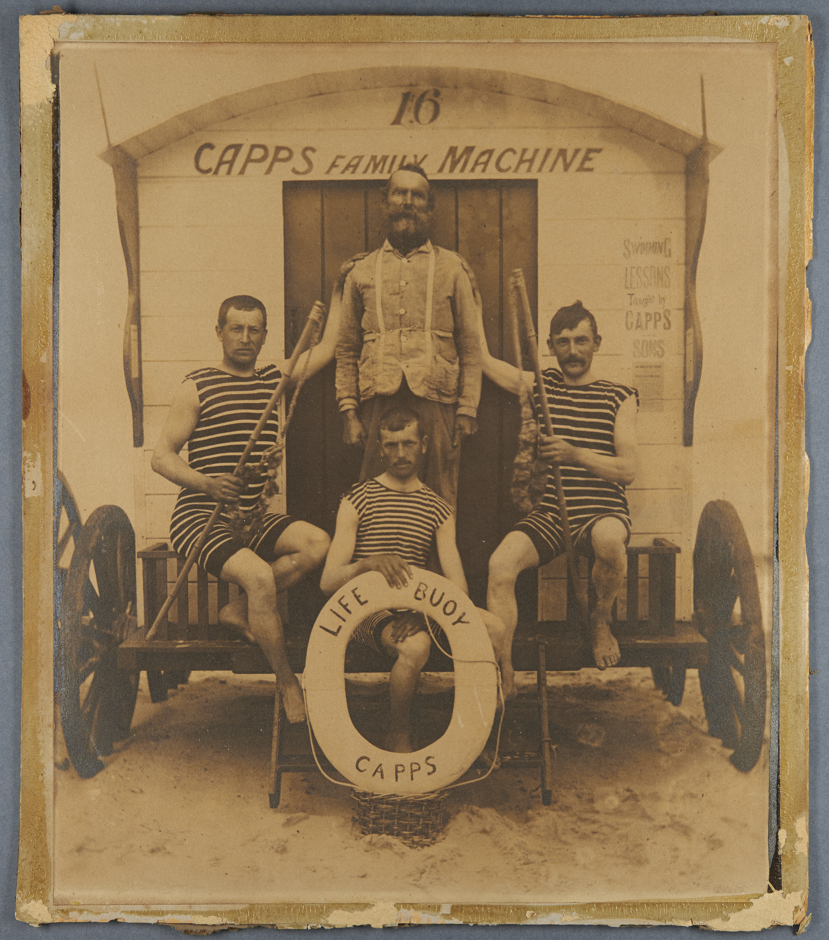 The Capps family on the steps of one of their bathing machines. NRO catalogue reference MC 2640/1, 990X9