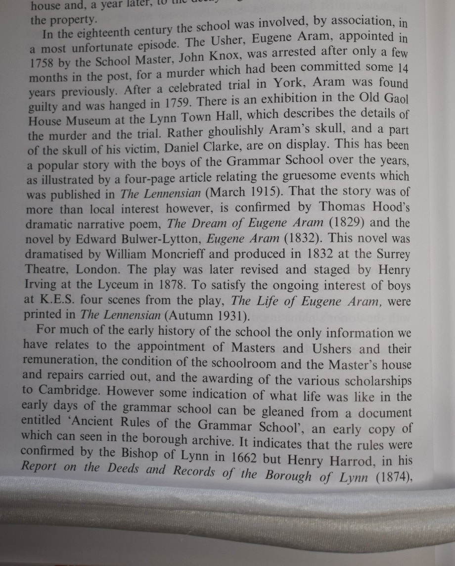 A Murderer in the School: The case of Eugene Aram of King’s Lynn.