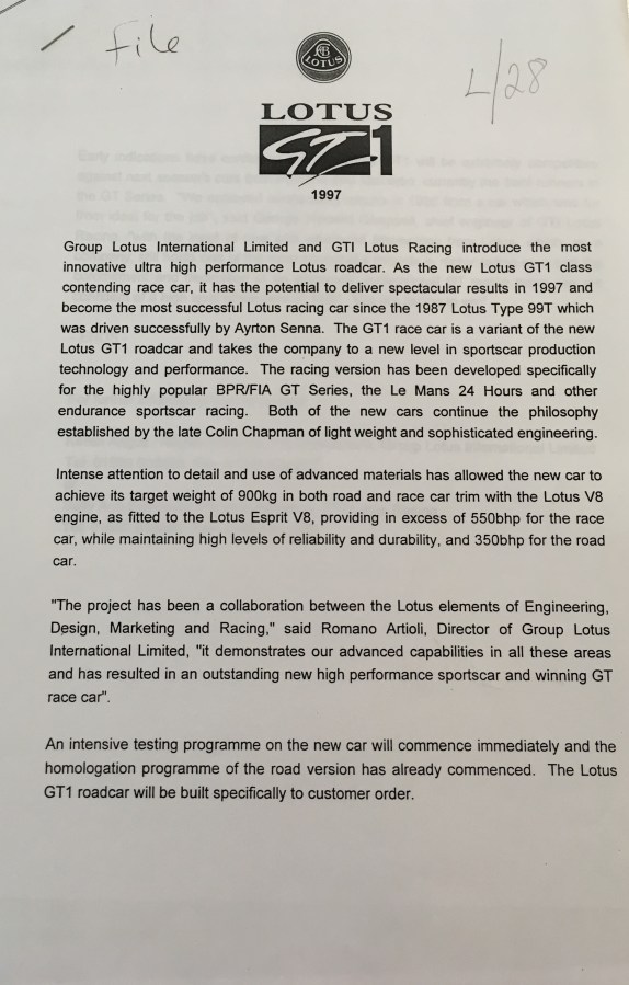 Lotus Press Release, 1997. NRO, AUD 1/1/490.