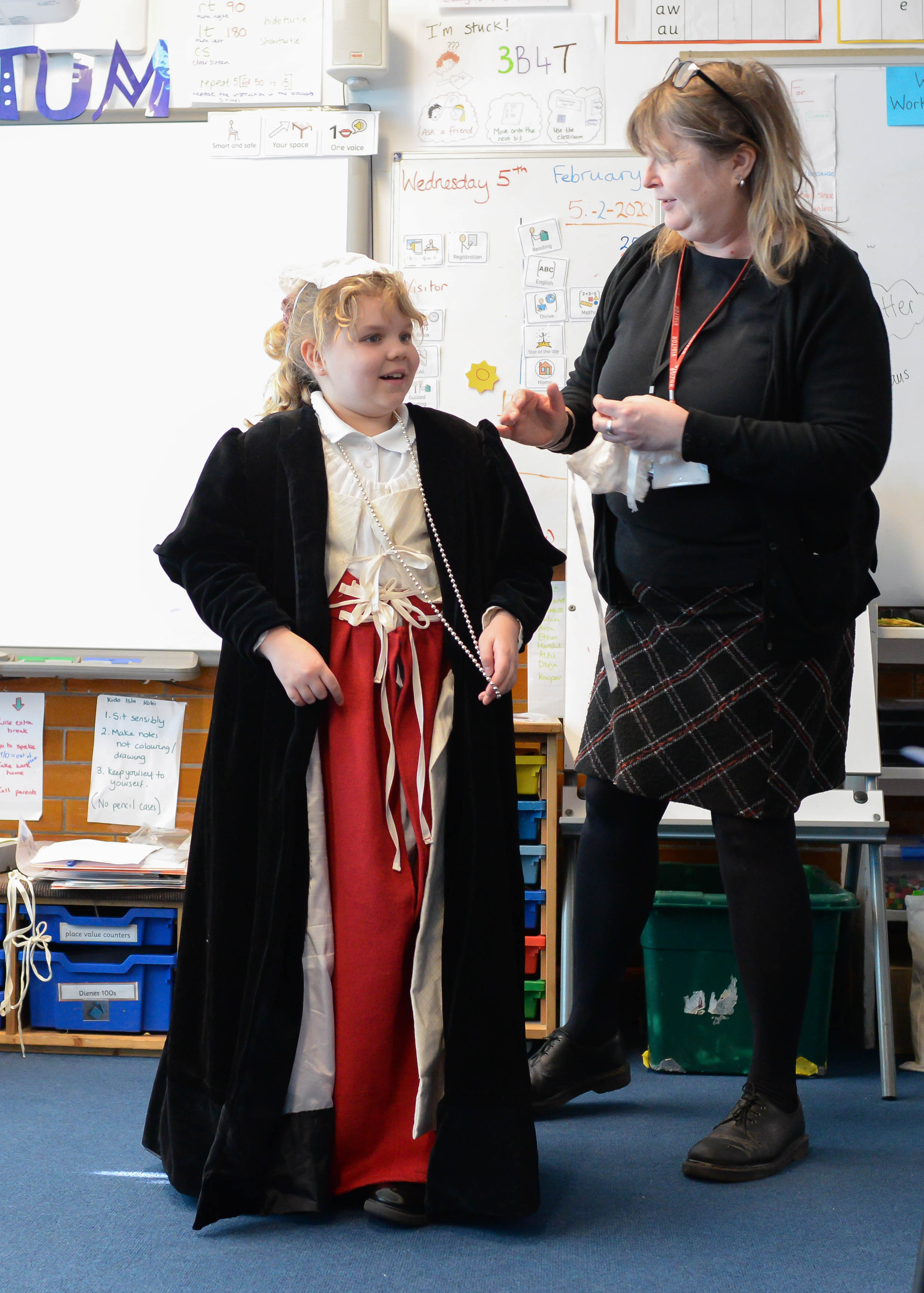 We use inventories of the stranger’s possessions to look at the clothes that they would have worn. Many of the strangers integrated with the locals and dressed in the fashions of the day. However, a few inventories contained items such as a Dutch cloak, showing that some strangers brought their own styles over with them. During this activity the pupils get to dress as Thomas Peche and Lady Jane Butts, using items made specifically to replicate those listed in their inventories.