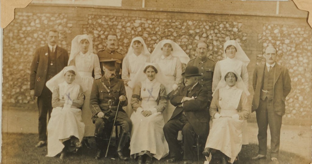 George played trombone in military bands with his younger brother Bert [Albert] and played around the country, including Kidderminster and Manchester. He began working at St Andrew’s Hospital, near Thorpe, Norwich, in about 1909 as an attendant and a musician in the hospital band.