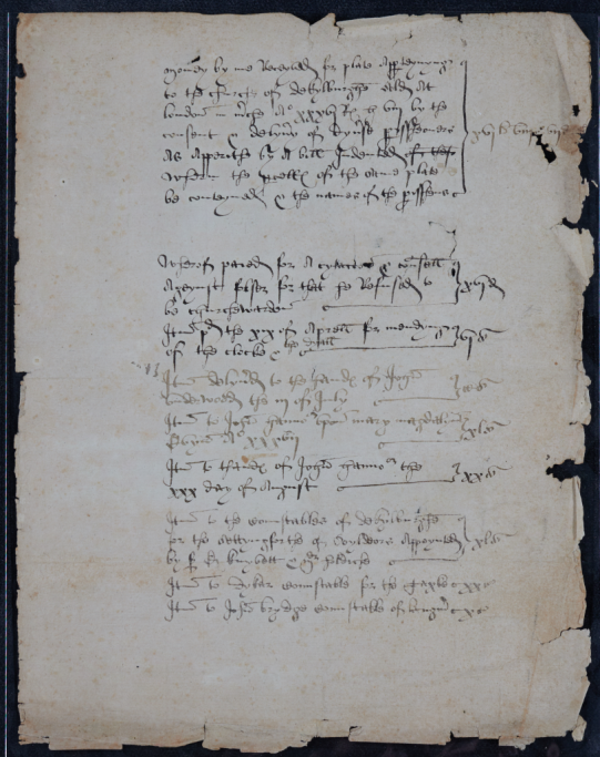 A close examination of the document by Professor Carole Rawcliffe of the University of East Anglia revealed that the manuscript comprised a single page which must have been removed from a set of churchwardens’ accounts of All Saints’ church in Dickleburgh, Norfolk. The parish name is rendered as ‘Dekylburghe’ in the original manuscript. Professor Rawcliffe’s transcription also confirmed the date of the start of the document as March 1545, and on this basis the trustees of the NORAH approved a grant for the NRO to successfully purchase the document in September 2020.