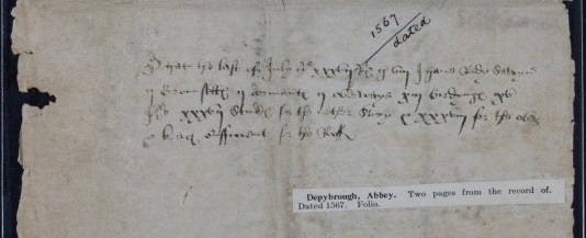 A manuscript offered on an American online auction site in the summer of 2020 claimed that the document originated from Depybrough Abbey and was dated as 1567. Unfortunately, research from historical and on-line sources for Depybrough Abbey could not confirm the existence of any such institution.