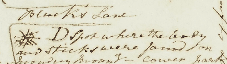 D Spot where the body and sticks were found.