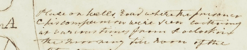 Many witnesses were called to give evidence of sightings of the two men who had loitered on the outskirts of Wells on the road to Wighton, on the afternoon of the murder. The two men had drawn attention to themselves by begging for sustenance from two local houses. The witnesses believed Hardiment to be one of these men.
