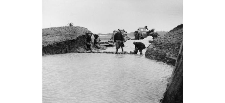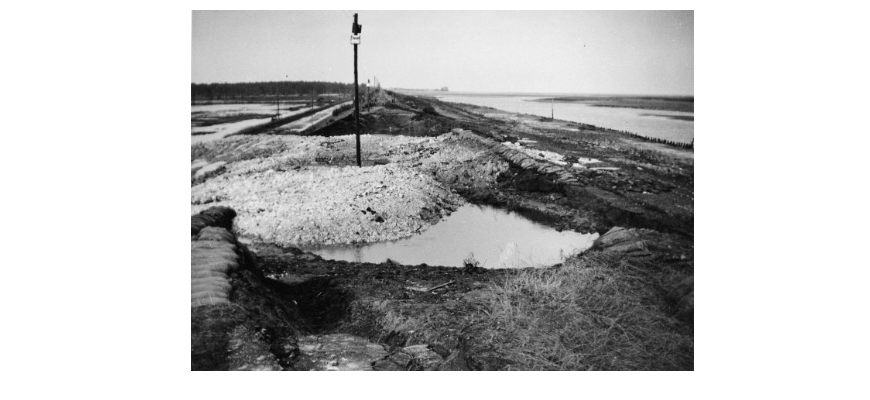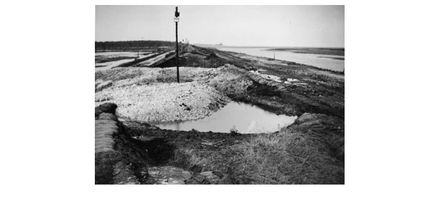 After the flood, a small boat was launched from a local hotel and sailed down the road to rescue stranded people. “An old boy and his wife were rescued with a door used as a make-shift stretcher” to get them onto the boat. The sea was “vicious”. Dead ducks lay in hedgerows, “a terrible sight”. The freshwater marshes were flooded by sea water at every tide for a week after the surge until the breaches could be sealed. About thirty lorries worked “round-the-clock” to plug the largest breach with chalk from the local lime works. Fishermen filled sandbags and with the help of helicopters, the breach at Wells harbour was filled.