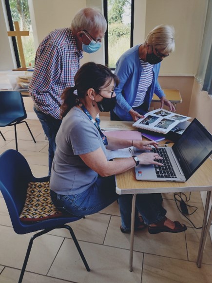 As a small group we kept in contact via outside meetings during the pandemic and managed a mix of online and face to face training with Robin! We have a very small collection, but we have put our archiving skills obtained through the project, to archive one of our founding member’s material. As a teacher in her day, Jean, I’m sure, would be very pleased to know that she had provided the resources to enable us to learn new skills! We acquired a filing cabinet and installed it in our church room lobby. Items are now filed away in folders provided through the project. Photographs of the items were made too (using the camera and computer purchased with our original HLF money). Our next task is some cross referencing and labelling of the photographs with the accession ‘code’ of their hard copy! We’ve learnt that the cataloguing and digitisation of materials should happen alongside each other so that we can ‘code’ as we go along! Along the way we have also produced two village calendars which have been well received.