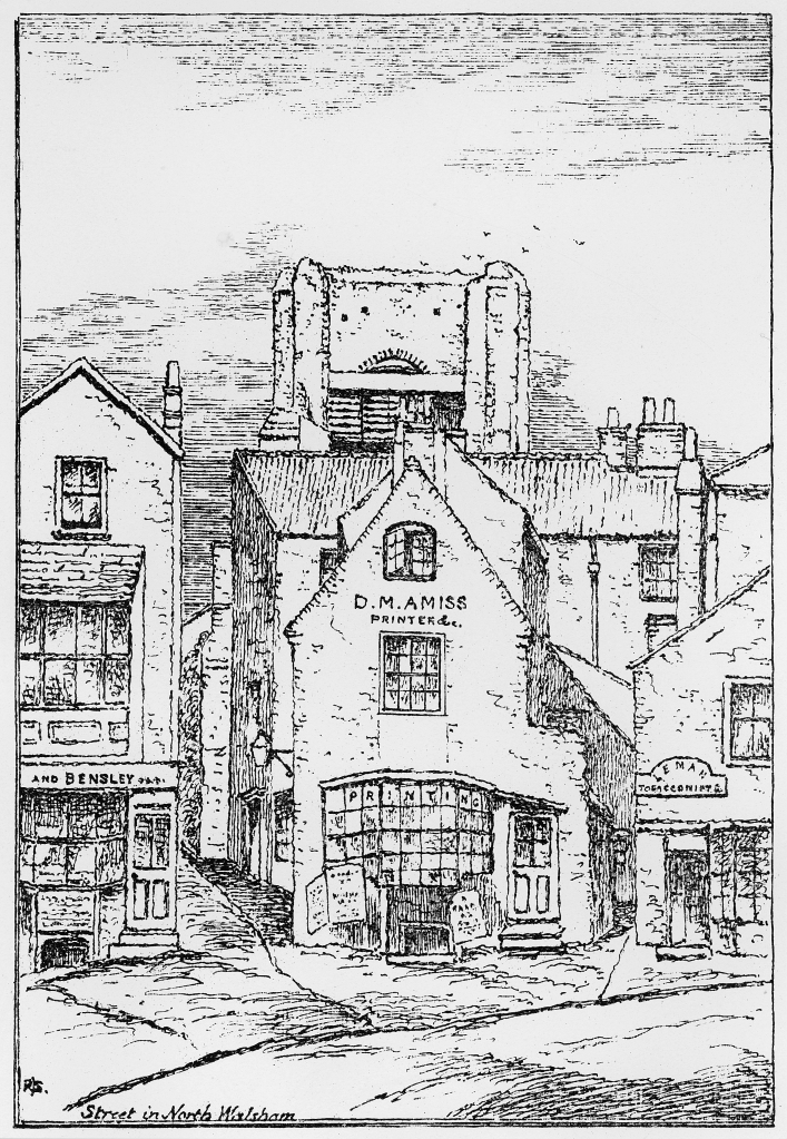 Market Street, North Walsham on Which the Feathers Public House was located. Nineteenth century engraving, ref. 718176. Courtesy of www.picture.norfolk.gov.uk