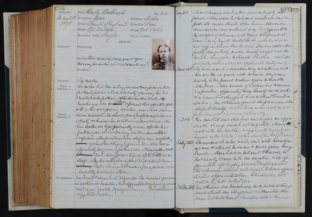 Entry in the Norfolk County Asylum Case Book for Ruth Bullard. NRO, SAH 267/275