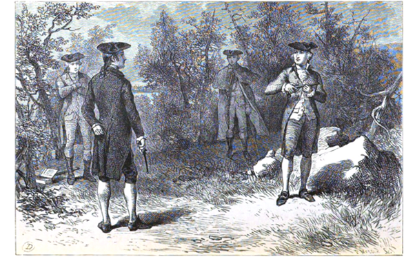 A duel being fought legally, witnessed by two neutral ‘seconds’ (Public domain, date unknown).