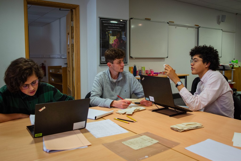 Twelve students enjoyed our latest work experience day at The Archive Centre. Pupils from Years 11-13 enjoyed learning about working in a heritage environment. They learnt how the archivists catalogue items in the collection, including how every document needs to have a unique reference number in order to identify and locate it. Next, they had a go at cataloguing a series of cards which represented documents. Students found that some of the items were easier to catalogue than others and we talked about the use of prevalence with archives. Towards the end of the morning students also learnt how to handle documents before having a go transcribing some documents included in a bundle of 17th and 18th century cures and recipes. These transcripts will be used in our children’s activity at Norwich Cathedral Family Fest on 16 August.