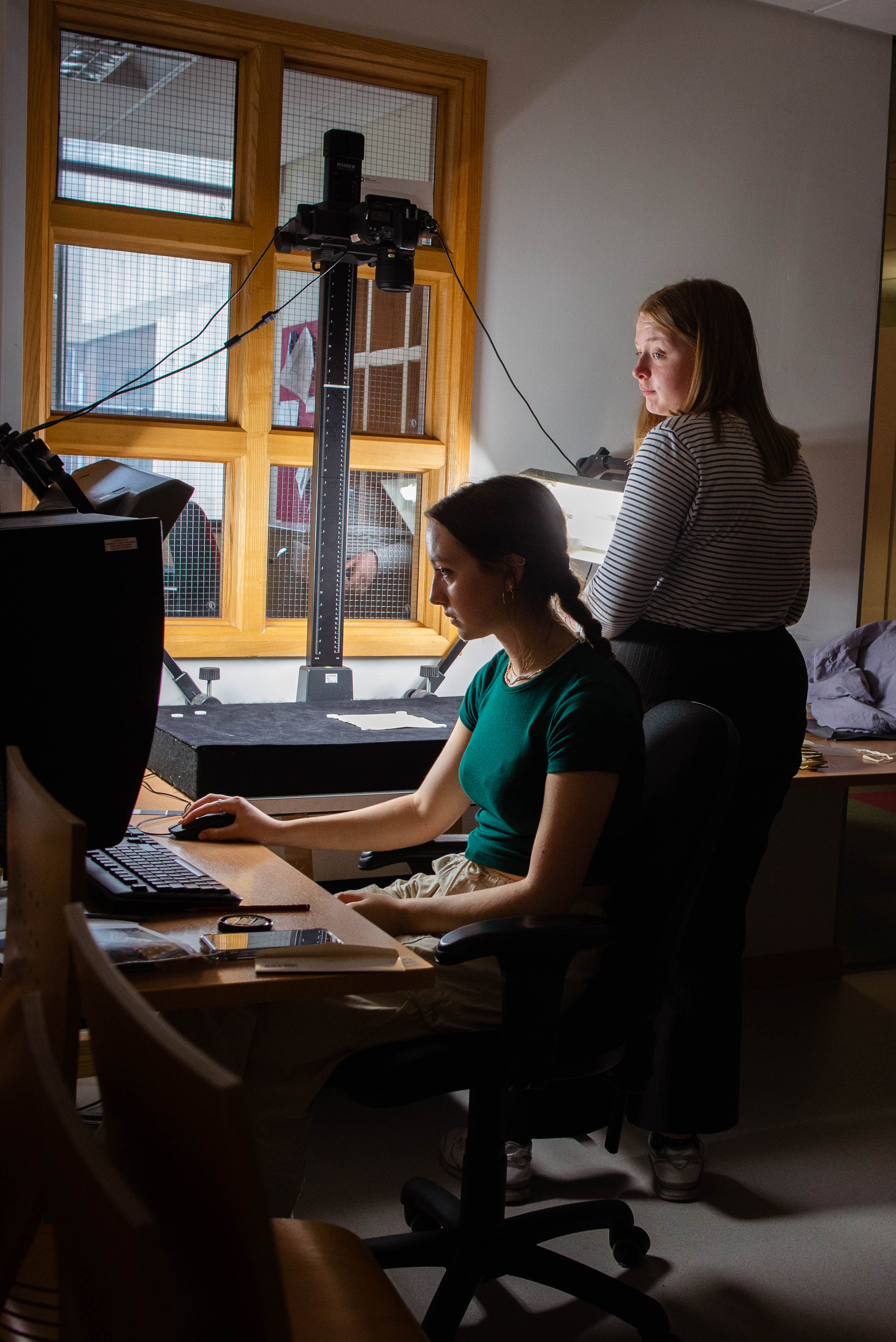After lunch the students were split into 3 groups and carried out a range of activities to put their new-found skills into practice. One group learnt how to clean maps with a smoke sponge to gently rub off surface dirt, before moving on to re-packing newly arrived documents into archival packaging. The second group worked on cataloguing some of the documents included in the bundle they had transcribed earlier. The final group learnt how to use the digital camera and software to photograph documents. Working with our conservation technician they were taught how to adjust the white balance, capture an image and edit it, and how to store the digital image.