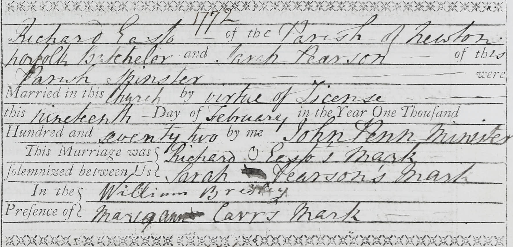 For some, at least, their stay at the workhouse had a happy ending. Sarah Pearson’s illegitimate child, Richard, was born in the workhouse in July 1771, since the father, Richard Eastoe, had run away to escape paying maintenance. The following February, however, Eastoe returned, married Sarah at Heckingham church, and took her and their child away to their own home.