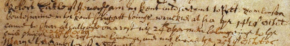 Robert Earle of Feversham [Faversham] in Kent and servant to Robert Tomlinson boateswaine in the Kent Friggett beinge wrecked at sea the 14th of October came to shore at Salthouse on a raft with 24 other men belongeinge to the said shippe the 24th of October all the rest now liveinge, and was buried the 25th of October