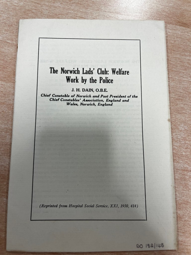 The Norwich Lad’s Club: Welfare Work by the Police, NRO, SO 182/148.