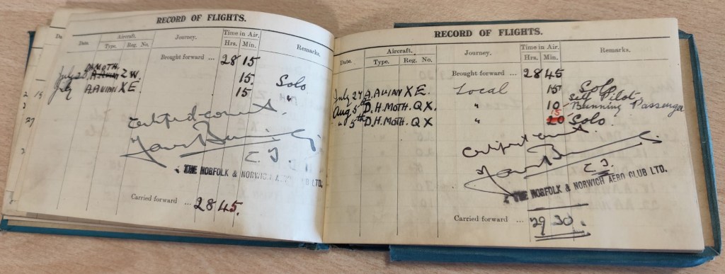 - Pilot’s log book and associated material, 1927-1931. Norfolk Record Office, BR 372/4/4/8.