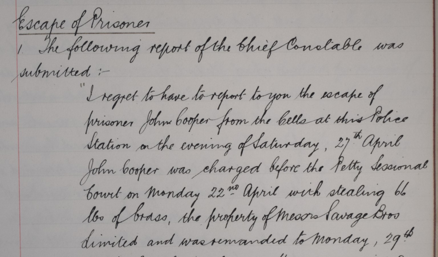 This is the story of John Cooper escaping from Kings Lynn goal and the events leading up to it. The information comes from the report by the Chief Constable of Kings Lynn’s police to the Borough’s Watch Committee and a write up of the trial in the Lynn News.