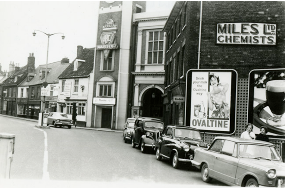 During the late 20th Century, King’s Lynn film screening was provided by two cinemas in the town: the Majestic (1928-present) and the Pilot (1938-1983). The late 20th Century is considered to be part of the peak of cinema with what is known as ‘New Hollywood’ production popularising cinema from the 1960s to the 1980s, followed by a decline in the early 1980s, hence the closing of the Pilot. Opening 10 years apart, these two cinemas are both considered to be of an Art Deco[1] style despite the fact they look very different.