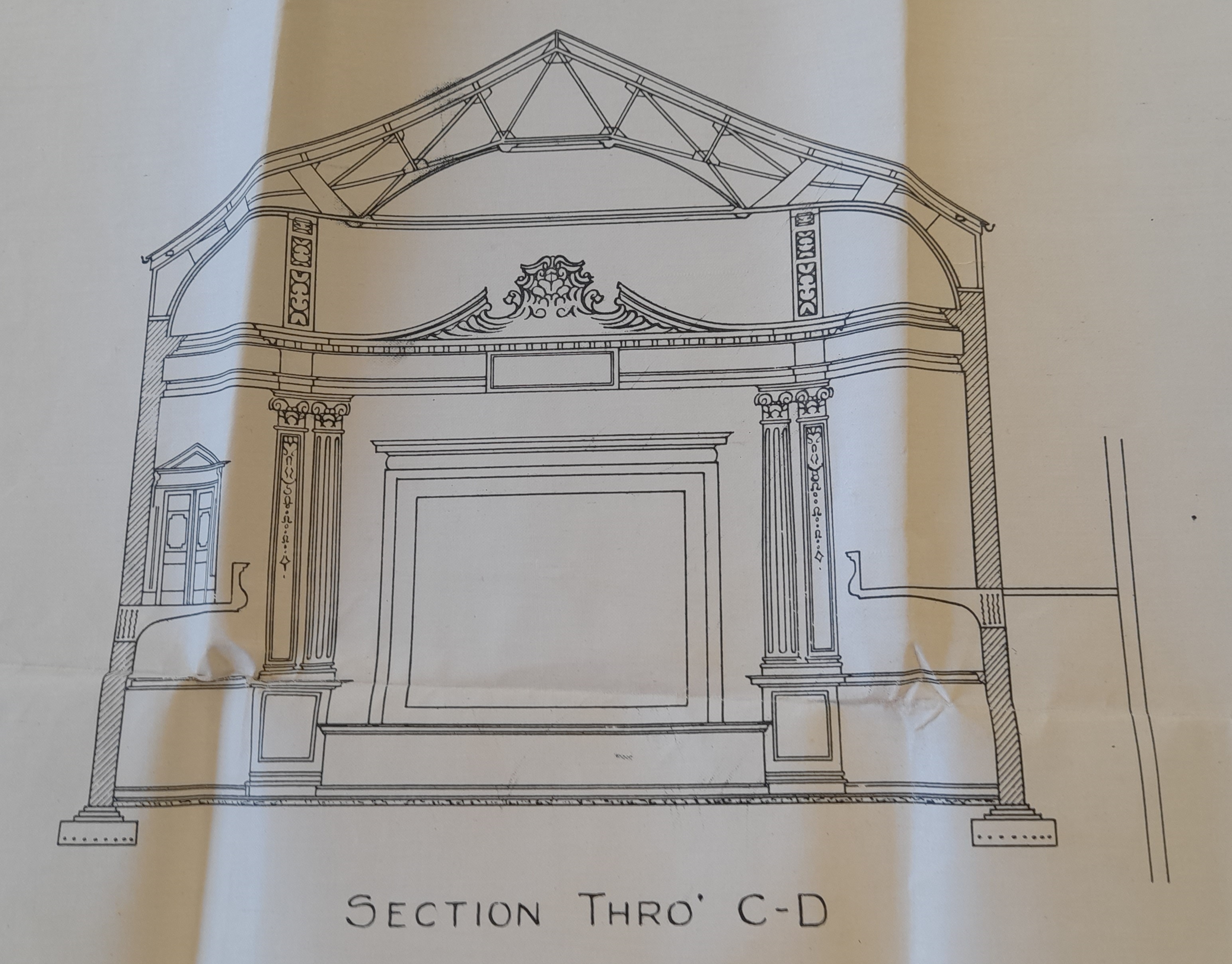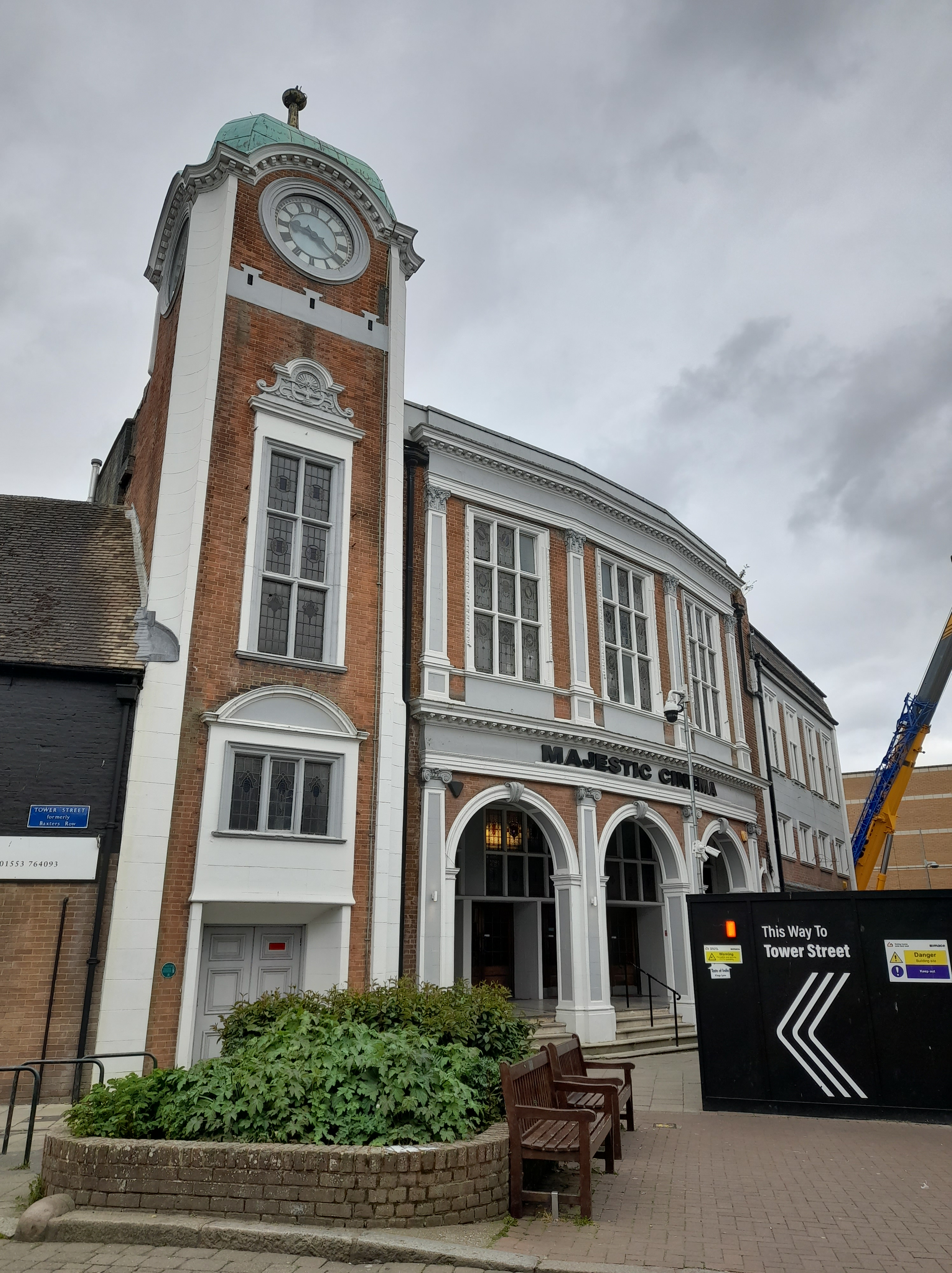 The Majestic Cinema was designed by the Norfolk-based architects Carnell and White. The plans (available in the King’s Lynn Borough Archives) are dated 1927, the year before it opened. Some of the key features of the design include neo-classical columns (as you can see in the section to the right of the clock tower) and semi-circular arches. Both of these architectural motifs are a nod to either Greek or Roman architecture, which was having a resurgence in the early part of the 20th Century and is apparent on many public buildings built at that time.