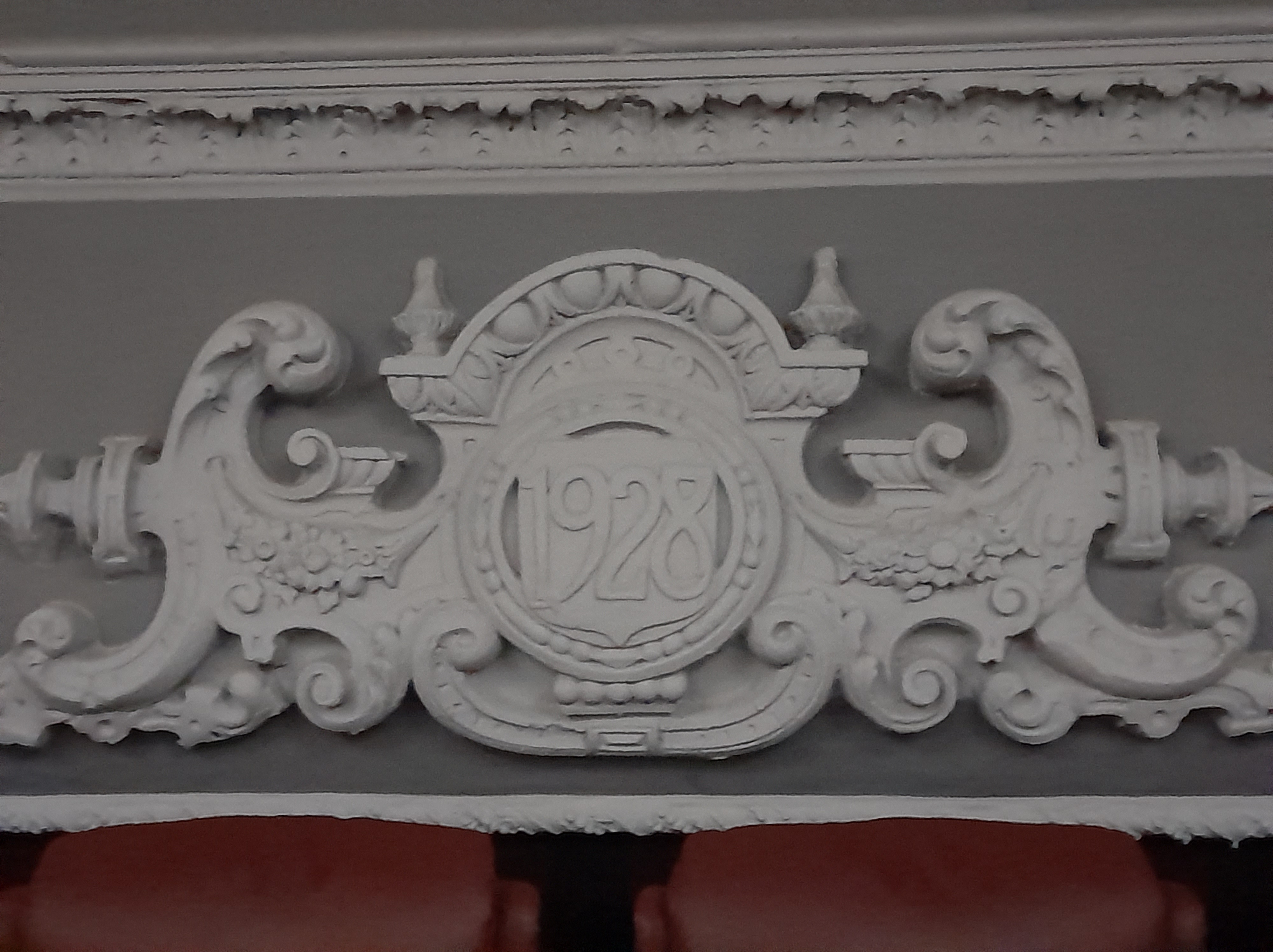 The Baroque style is associated with the early 17th Century and does overlap with what is considered a Jacobean style, but it is more flamboyant and evolved in Rome before spreading around Western Europe. Motifs often included flowers and fruit. Flowers can be seen on the plaster relief, below, which is on the back wall in one of the cinemas.