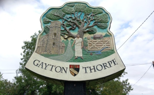 A pattern emerged between the two parishes whereby the smaller congregations were predominately at Gayton Thorpe. One explanation may be that the church at East Walton lay in the heart of the village, facing onto the village green. Also, that Reverend Crawford and his family were probably better known in this parish as they lived in the vicarage here. One note in the service register stated that the rector’s wife, Mrs Emma Crawford, played the harmonium at ‘EW‘ church whilst a Miss Elizabeth Rix played at Gayton Thorpe church. Today, Gayton Thorpe church lay just outside the centre of this hamlet on Church Lane, although there are a small line of old cottages nearby, all still being occupied. The village sign below shows the 14th century St. Mary’s Church, indicating it had been a significant village landmark.