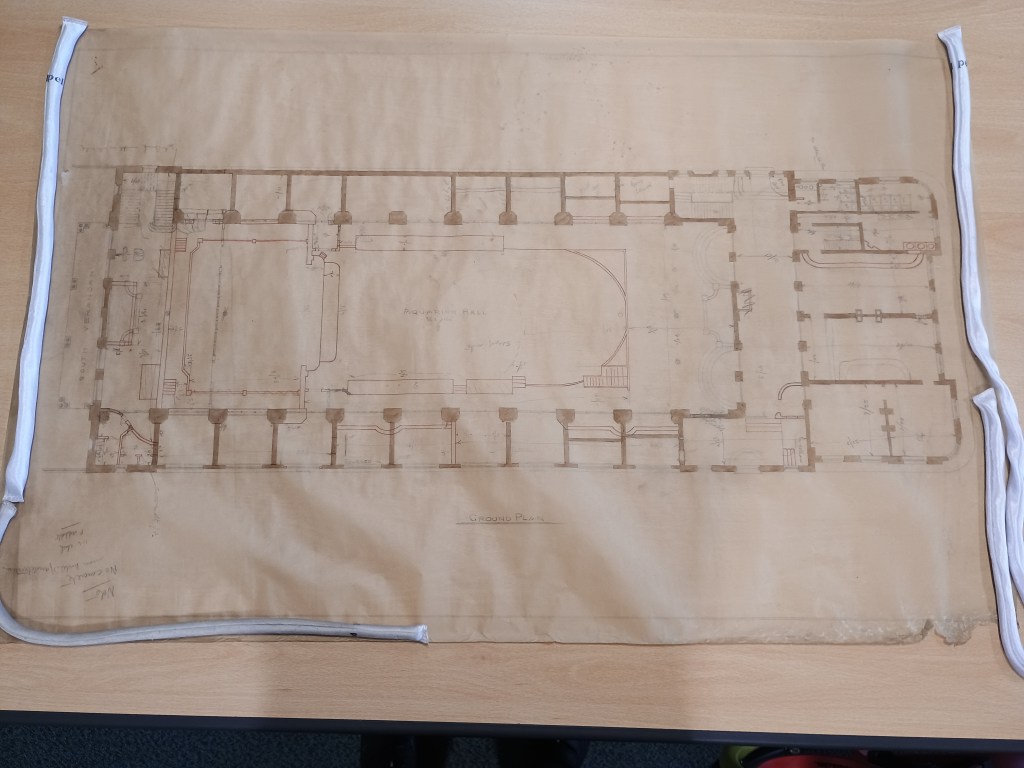 The paper is translucent and very brittle, and there are pencilled notes scrawled across it in a general hand, rather than printed as might be found on a final plan. Constructing a building requires confidence – there must have been reason to believe that it would succeed, and if we were to simply take Mr Starling’s account, it would seem as if it did.