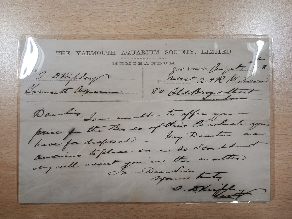 Reality was more complicated. A memorandum from a mere two years later (NRO, MC 1467/1, 812X6) shows that the Aquarium refused to purchase back bonds of the Aquarium Society, perhaps hinting at financial instability.