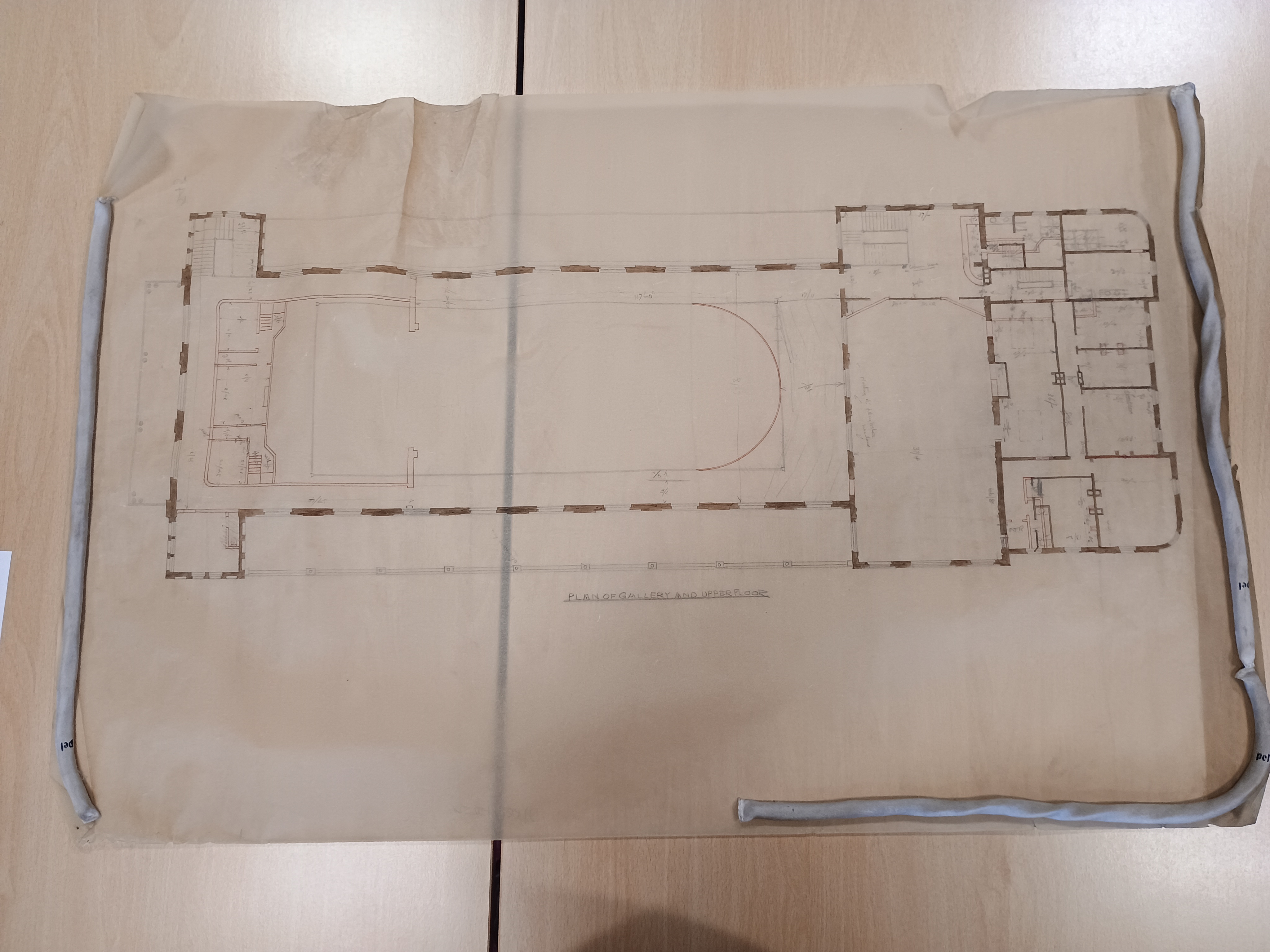 The paper is translucent and very brittle, and there are pencilled notes scrawled across it in a general hand, rather than printed as might be found on a final plan. Constructing a building requires confidence – there must have been reason to believe that it would succeed, and if we were to simply take Mr Starling’s account, it would seem as if it did.