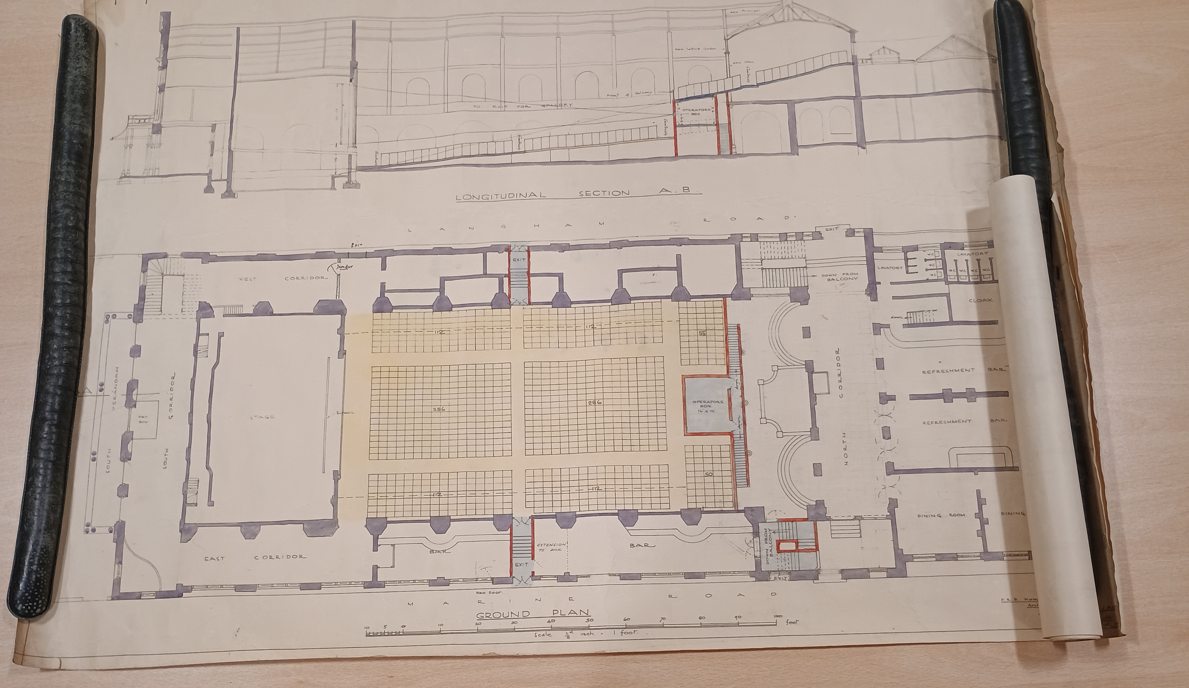 Nonetheless, it survived the development and continued on from that point fairly well, to the extent that by 1931, it was again under construction – this time with a proposed plan to add 530 additional seats via a balcony (NRO, Y/BE 2/647/1-2). The plan is cleverly constructed; an attached partial sheet displays the balcony plans, able to be rolled out of the way to show the existing capacity of 1,065 seats.