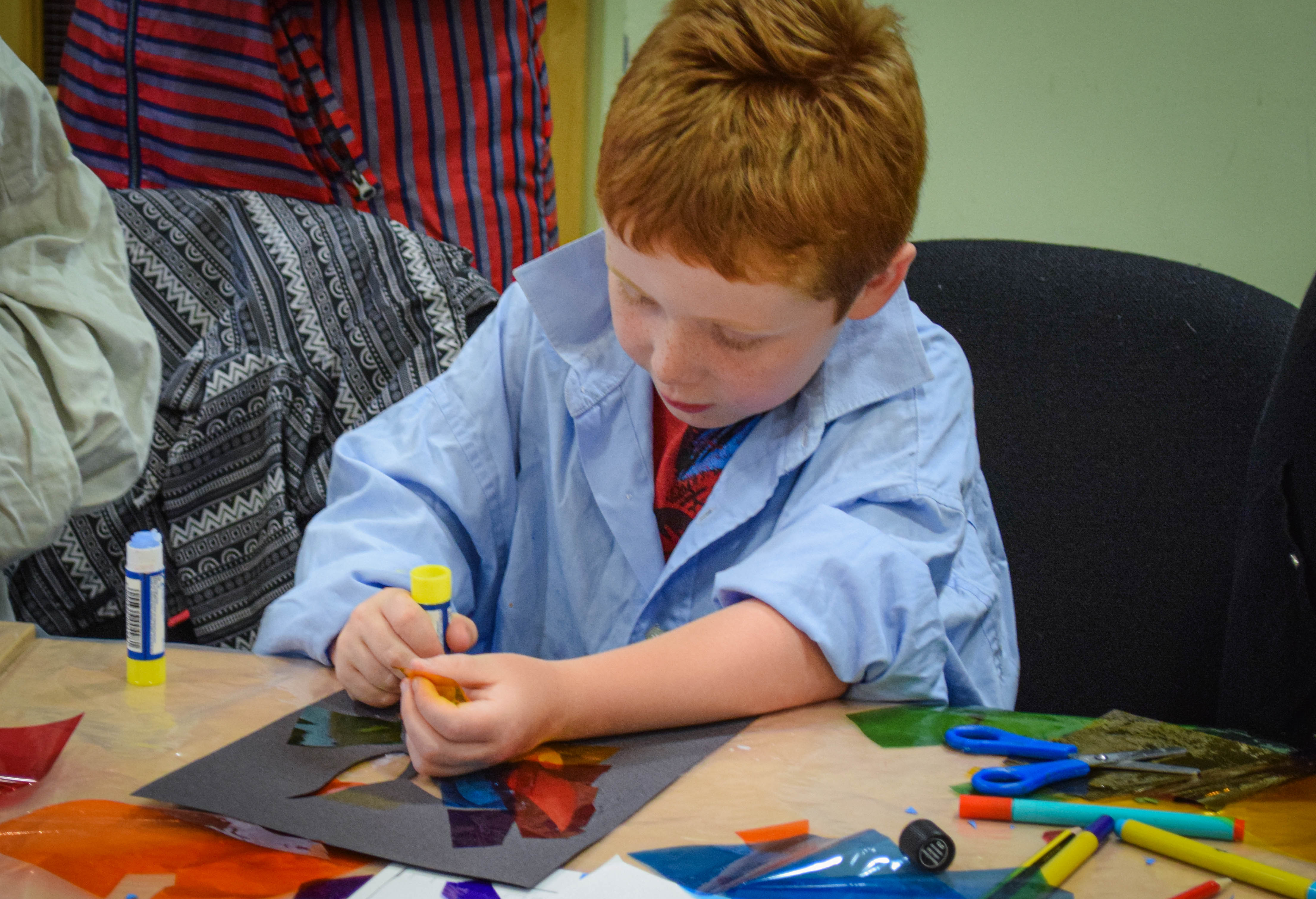 Take inspiration from stained glass designs in the archives and a mixture of materials including glass pens, paints and cellophane to create your very own stained glass to take home.