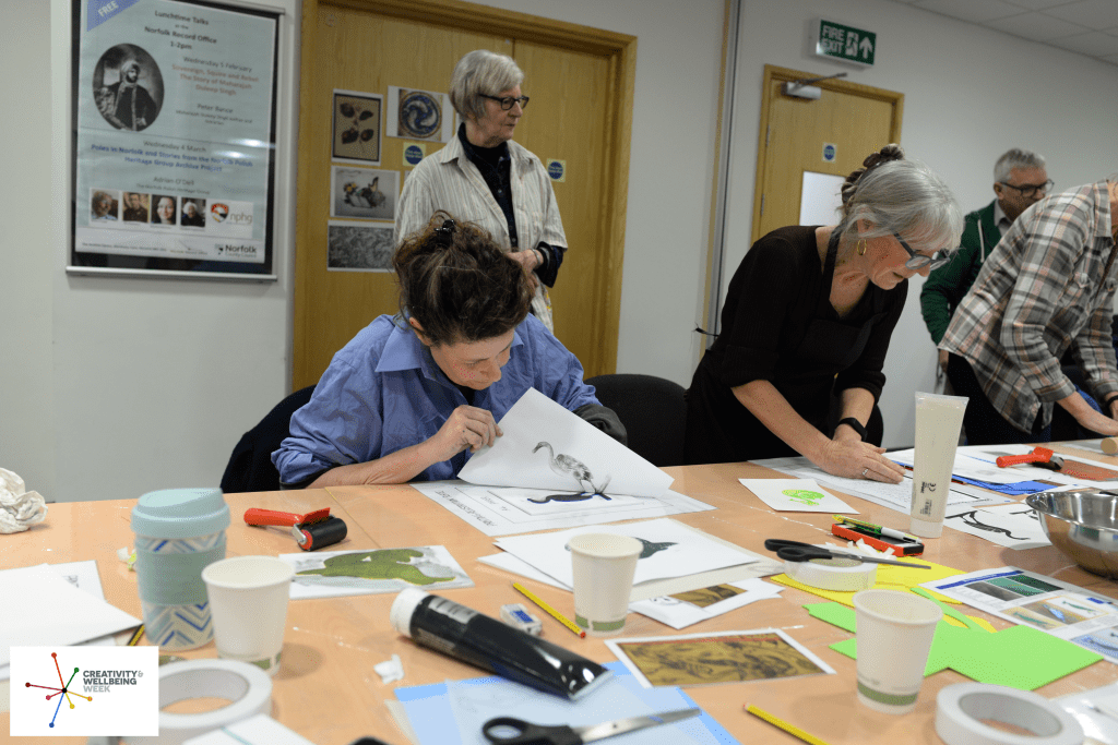 During Creativity and Well Being week, learn how to create your own block and adapt it for multi-layered relief printing. See some examples of relief prints from our collection. Discover how local printers Jarrold’s created some of their prints, from initial sketch, through to the block itself and the final image.