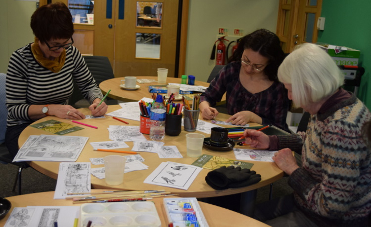 Take time out to colour in some (copies of) pencil drawings from our archives.